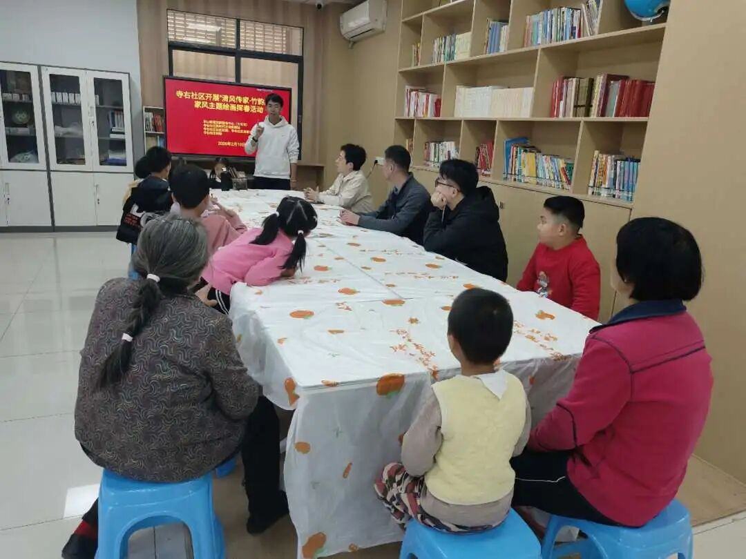 近日,在东山街纪工委指导下,东山街党群服务中心(文化站)、寺右社区新时代文明实践站、社区纪委、监察站、社区妇联多方联动,在寺右社区开展“清风传家·竹韵廉心”家风主题绘画挥春活动。