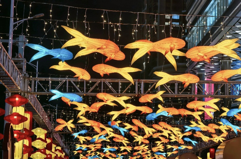 除了亮眼的景观布置,各大商业体新春期间推出的系列活动更是精彩纷呈,让年味既有文化厚度,又有潮流热度。汉溪K11以“more to luck 兴起一番好运”为主题,启动“一番好运花市”,市集涵盖岭南非遗、年俗文创、创意手作、新春美食等多个板块,携手佛山民间艺术研究社打造的数百只鱼灯组点亮花市夜空,寄托“年年有余”的美好寓意,以艺术赋能传统年俗。