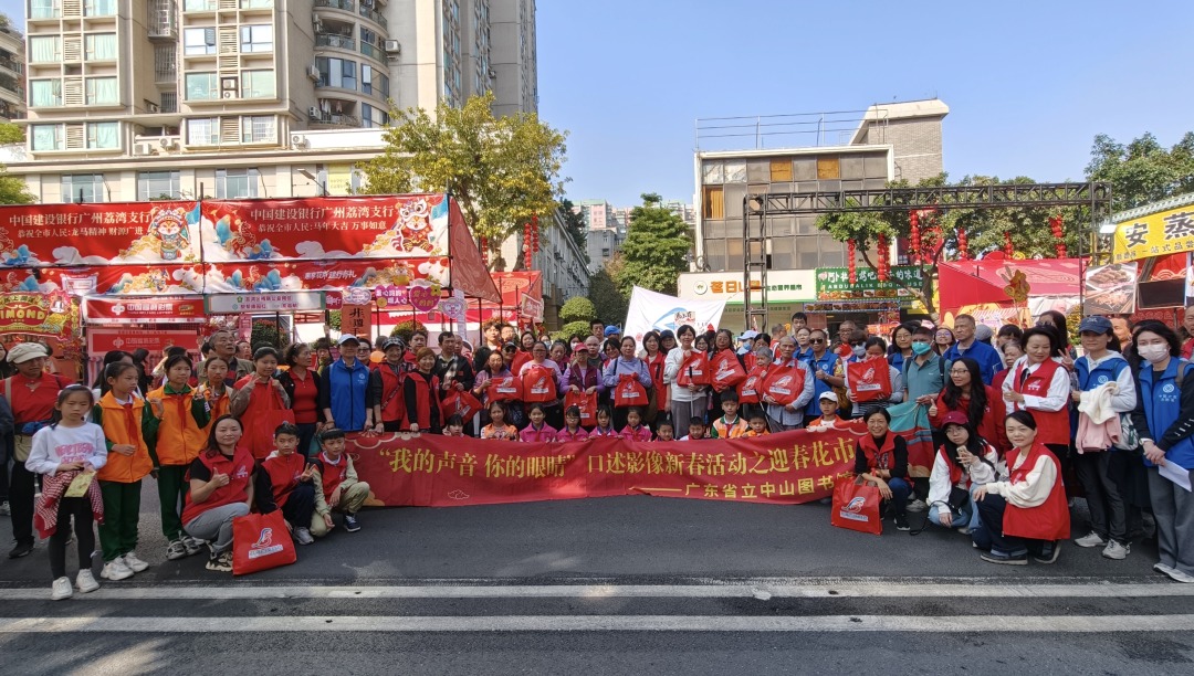 “云赏花市 跃马迎春”口述影像新春专场活动由广东省立中山图书馆、广州市融爱社会服务中心共同主办,广东广播电视台粤听电台全程提供技术支持。本次活动得到社会各界的关心与支持,荔湾区百货商会为视障人士送上慰问物资,以爱心善举为活动顺利推进提供有力保障。