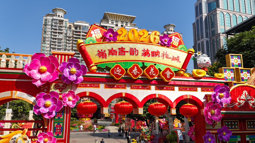 “迎春花会”始于1957年农历新春,它与同是诞生于上世纪50年代的“中秋灯会”“羊城菊会”,并称为“三大展览”,发展至今已成为广州的传统特色文化品牌,是市民游客一年一度的“保留节目”。2026年迎春花会以“岭南春韵 荔映花城”为主题,展出时间为2026年2月16日(除夕)至3月3日(正月十五)。