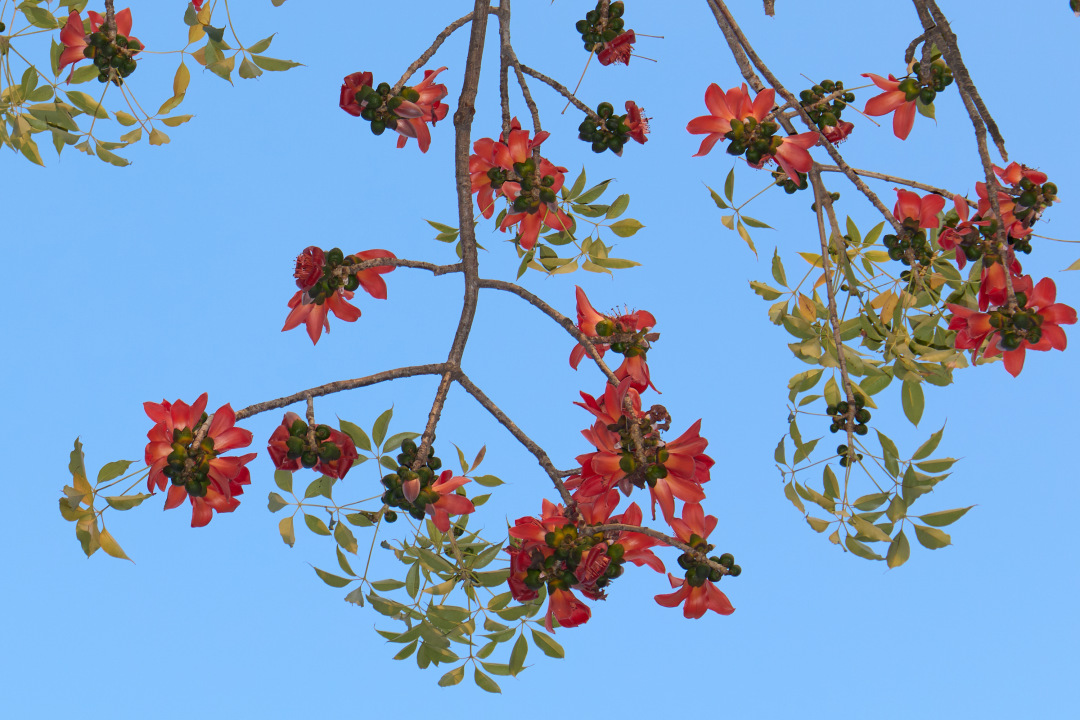 而广州的红,藏在繁花似锦里,藏在生机盎然中。老舍在《春来忆广州》中满心艳羡:“真羡慕广州的朋友们,院里院外,四季有花,而且是多么出色的花呀!” 木棉傲然挺立,深红花瓣缀满枝头,落在青石板路上,像时光盖下的鲜活印章;三角梅攀着围墙盛放,一簇簇嫣红点缀街巷,让整座城愈发动人。这份繁花盛景,冰心在《记广州花市》中写得真切:“我们发现那里是花山,也是人海。在鲜花和绿叶堆成的一座座山下,奔流着汹涌的人群,我们走入春天的最深处了。”