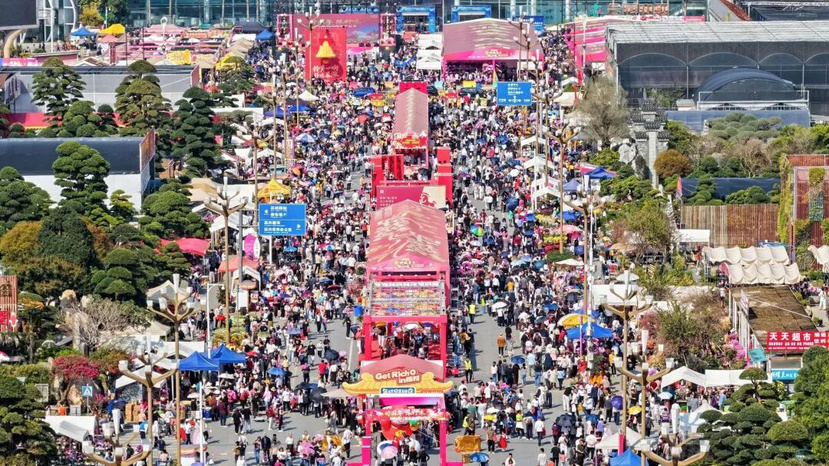 位于佛山顺德的陈村素有“千年花乡”“中国年桔之乡”美誉,花卉种植历史逾千年。历经42载积淀,陈村迎春花市已发展为岭南规模最大、品类最丰、年味最浓的花事盛会。今年,花卉大道与花卉世界主会场延绵十里花街,超600个摊位,过万种年宵花品种及特色花卉衍生品集中展销。节前天气晴暖,花卉绽放,也吸引了众多本地市民和游客前来消费。
