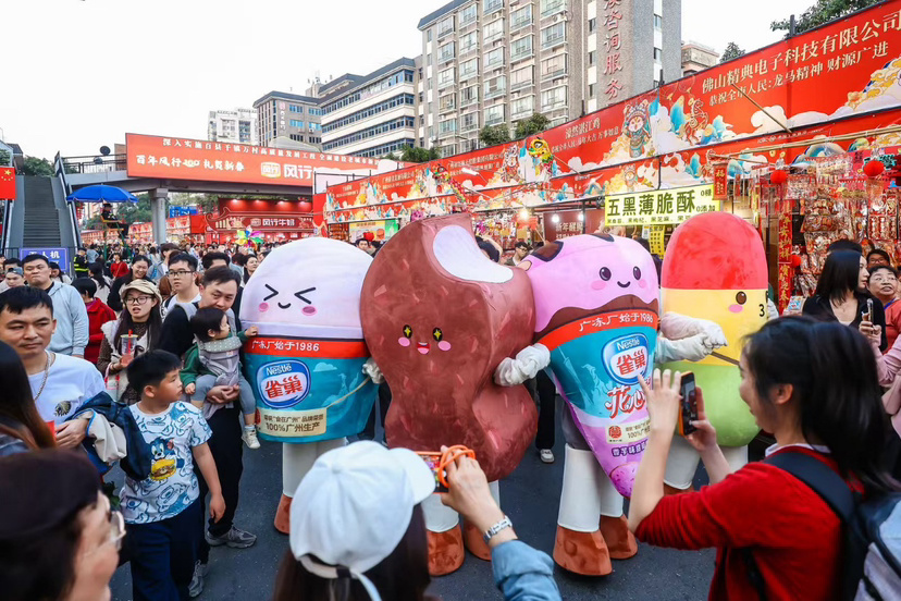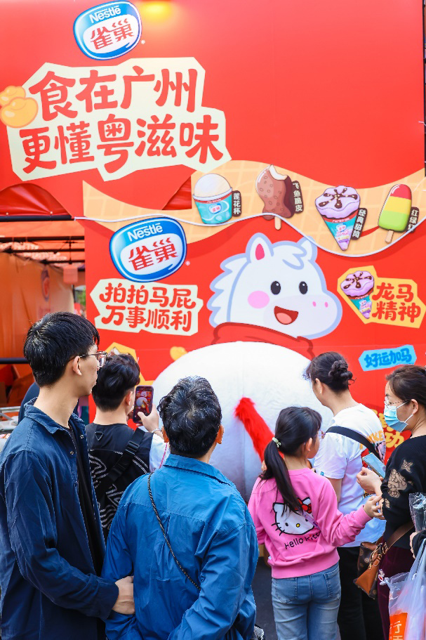 “逛花街,行大运”是广府人过年必不可少的仪式。春节临近,广州各区迎春花市均热闹非凡,而在西关风情浓厚的荔湾花市与坐拥珠江美景的滨江花市里,一个承载着广东人童年雪糕的集体回忆——雀巢冰淇淋的品牌摊位惊喜现身,凭借马年氛围满满与广府元素完美融合的趣味设计,成为花市中的热门打卡点。陪伴了几代广州人成长的香芋甜筒、飞鱼脆皮、红绿灯、莲花杯化身可爱人偶,与市民惊喜互动、合影留念,唤醒了许多人心中的童年味觉记忆。
