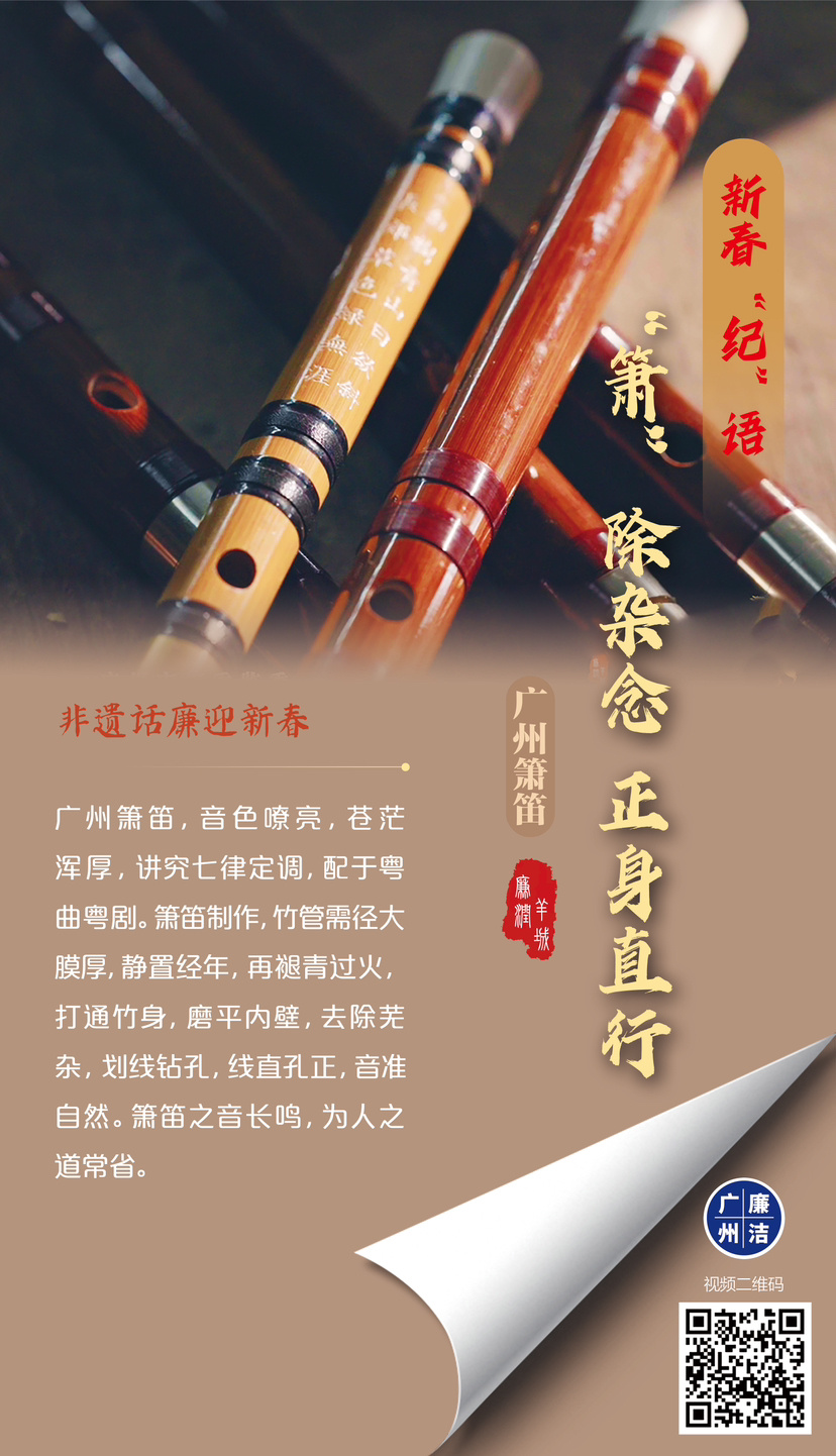 金马扬蹄启新岁,清风相伴度佳节。节点亦是“考点”,“年味”当有“廉味”,越是喜庆团圆之时,越要绷紧纪律之弦、恪守规矩之道。为进一步筑牢“节日防腐墙”,拧紧“节日清廉关”,广州日报联合广州市纪委监委在新春佳节推出《非遗话廉迎新春》系列主题海报,在品味博大精深的非遗技艺中感悟廉洁文化,让代代相传的“老手艺”结合“廉”元素新表达,让清风正气充盈节日假期,共度廉洁平安、欢乐祥和的马年春节。