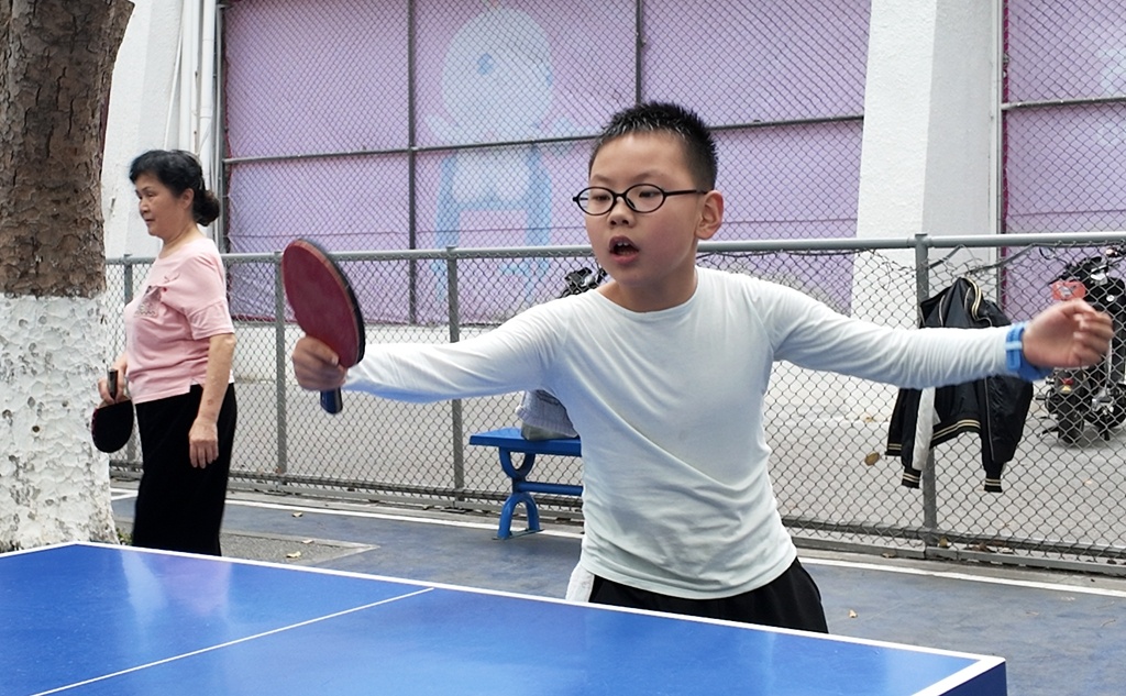“我特别喜欢打乒乓球,走到哪里都会带着球拍,这里体育设施特别好,气氛也很浓。”孟原震说。