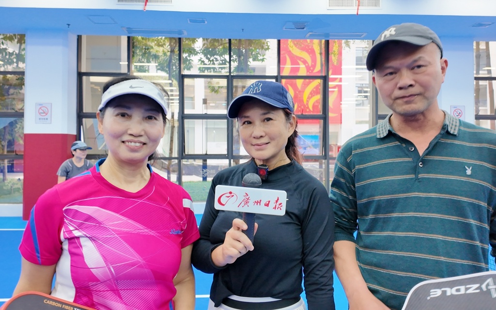 在位于天河体育中心北门广场的百姓乒乓乐园,很多乒乓球爱好者正挥汗如雨,记者采访了来自安徽亳州的爷孙俩,他们趁着寒假到广州旅游,读小学四年级的小孙子孟原震随身携带乒乓球拍,于是就一起到天体打球。