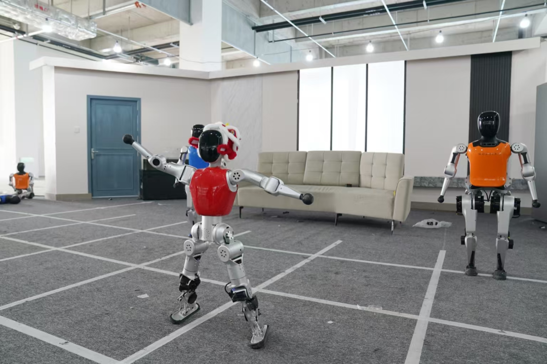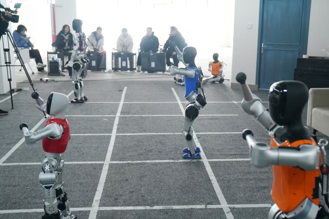 接下来的“备战”阶段,厂房里的灯光常常彻夜不熄。技术团队反复调整机器人的技术参数与算法,累计更新了300多条动作策略。最终,这群人形机器人终于练就了“翻跟头不出格”的绝技,在春晚的狭小舞台上,完成零失误的精彩表演。