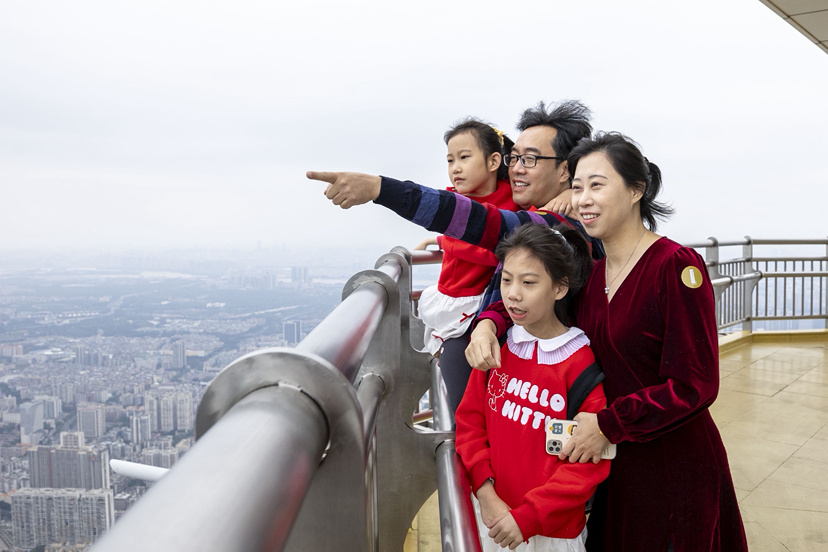 两组家庭不仅收获专属福袋,更享受独家搭乘新年第一趟电梯直冲云霄的礼遇。在488米高的户外观景平台上,专业摄影师全程跟拍,捕捉他们“马年第一跃”的腾飞瞬间,定格新年的第一份好彩头。