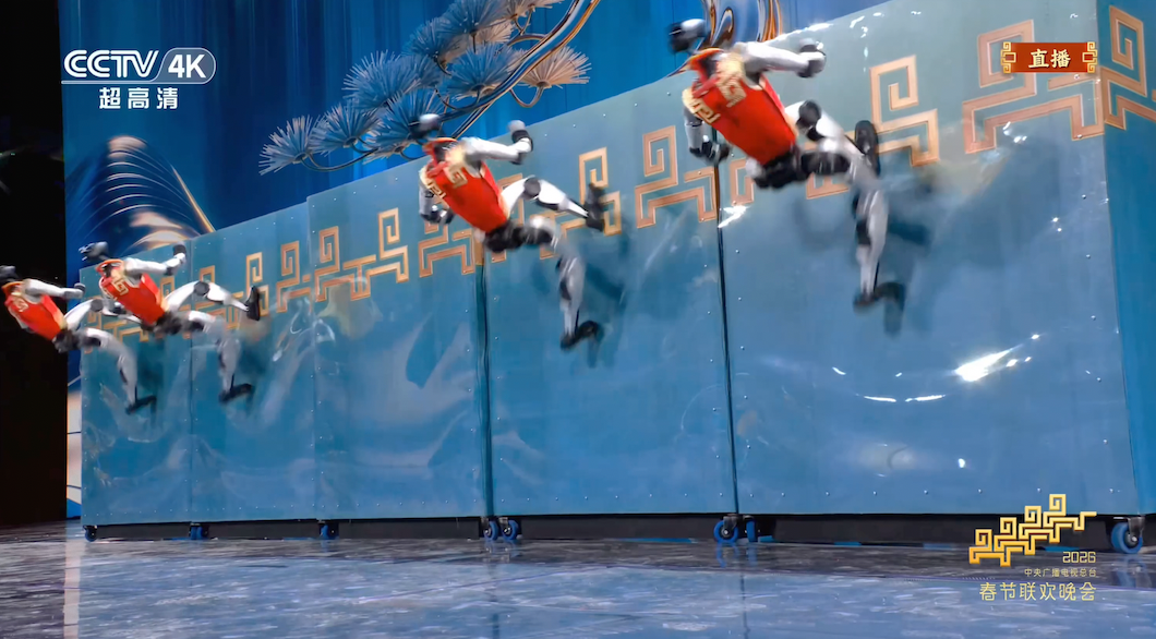 抢着上春晚的除了明星,还有机器人。宇树科技、魔法原子、银河通用、松延动力四家机器人企业齐登马年央视春晚,多款机器人不仅通过笑话互动与现场演员表演小品,表演了翻跟头、头部伸长等技能,还秀出了“赛博真功夫”引来观众欢呼叫好。随着节目播出,“机器人全面入侵春晚”等话题登上微博热搜。
