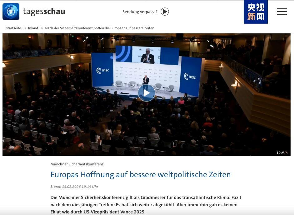 德国电视一台《每日新闻》网站同日评论称,今年会议再次证明跨大西洋气候“进一步降温”,虽然未出现去年的公开冲突场面,但“美国与欧洲之间的鸿沟在慕尼黑变得前所未有地清晰”。