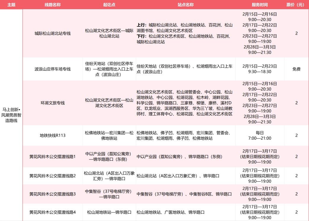 城际松山湖北站专线、波浪山庄免费摆渡线及黄花风铃木公交摆渡线已开通,市民可乘专线直达黄花风铃木花海,感受科创与生态的完美交融。