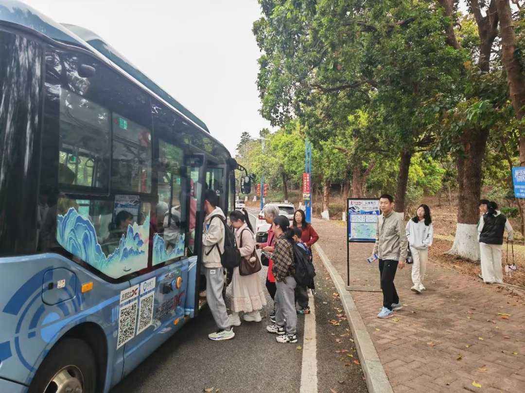 大年初一的大岭山森林公园人气爆棚,上午9点,景区入口的公交接驳站已有市民排起小队。带着一家老小的市民陈先生感慨:“以前春节来大岭山森林公园,要排很长的车龙才能到观音寺,现在坐上接驳车,又快又方便,老人小孩都很喜欢!”