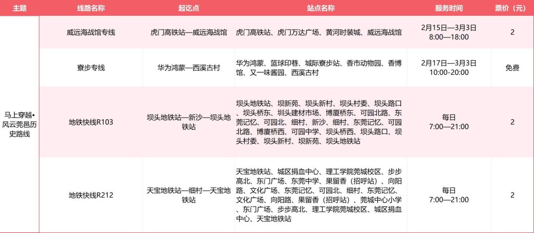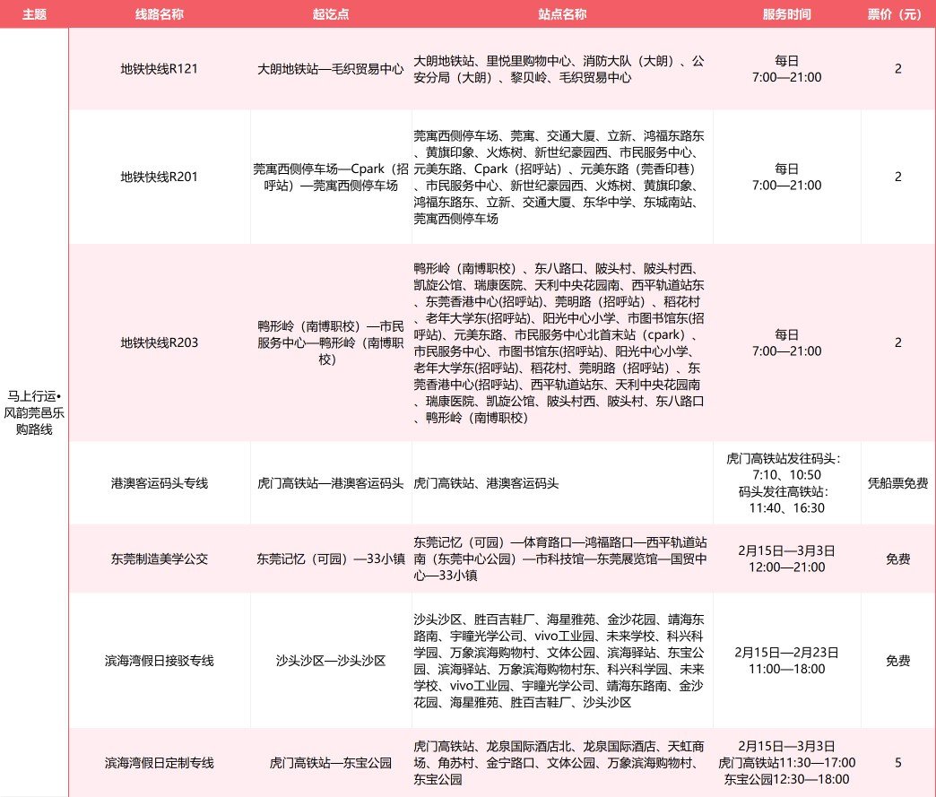 还有串联可园、鸿福路口、西平、国贸中心、33小镇的东莞制造美学公交,成为年轻人“Citybus”打卡新宠;港澳客运码头专线凭船票免费接驳虎门高铁站,为水路抵莞游客提供“最后一公里”便利。