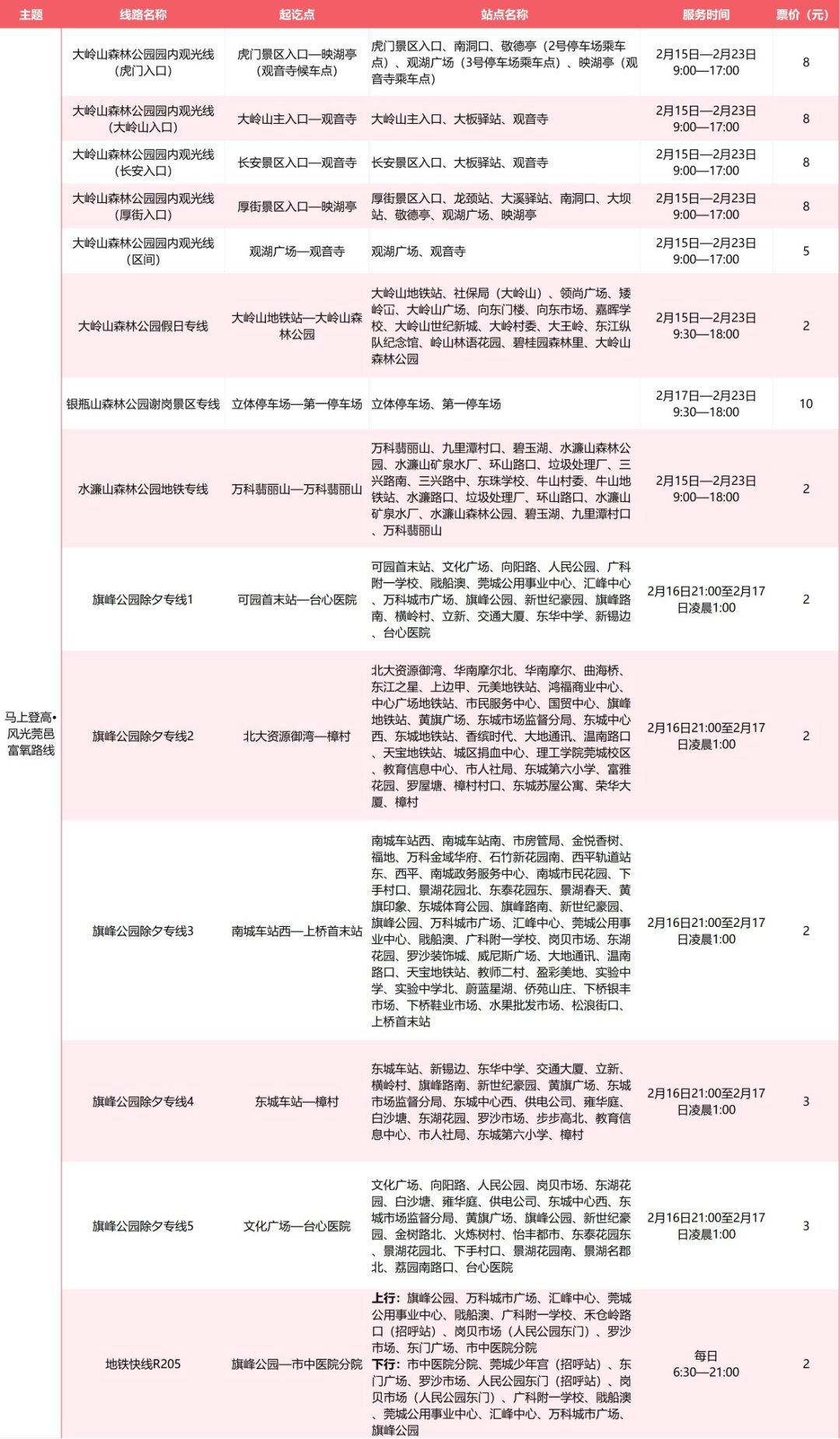 新春佳节,莞邑大地年味浓郁,登高祈福、游园赏灯、休闲娱乐成为主流活动。东莞巴士根据广大群众春节期间的出行动向,提前布局开通“马上”系列六大主题、含40余条春节文旅专线,从森林公园到城市绿洲,从水乡古村到滨海商圈,将城市的烟火气与山水色紧密串联,为市民及游客提供贴心出行服务。