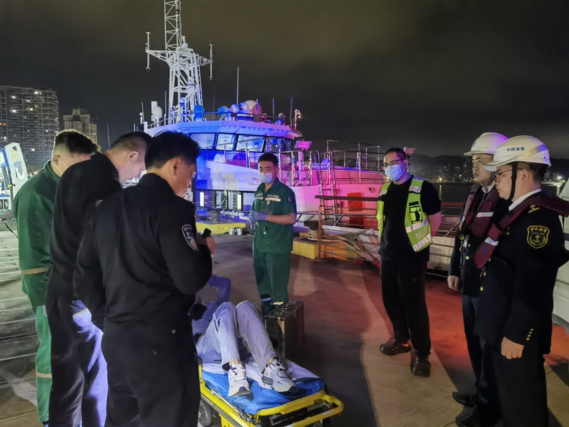 2月15日21时29分,广州市海上搜救中心紧急通报:外籍船舶“CS XX”轮上一名船员突发剧烈腹痛,疼痛难忍,急需紧急医疗救助。接报后,广州海事局交管中心立即对“CS XX”轮开启重点护航,科学规划最优航行路线,指引船舶驶往安全的锚泊水域,并提醒过往船舶主动避让,确保救援通道畅通无阻。