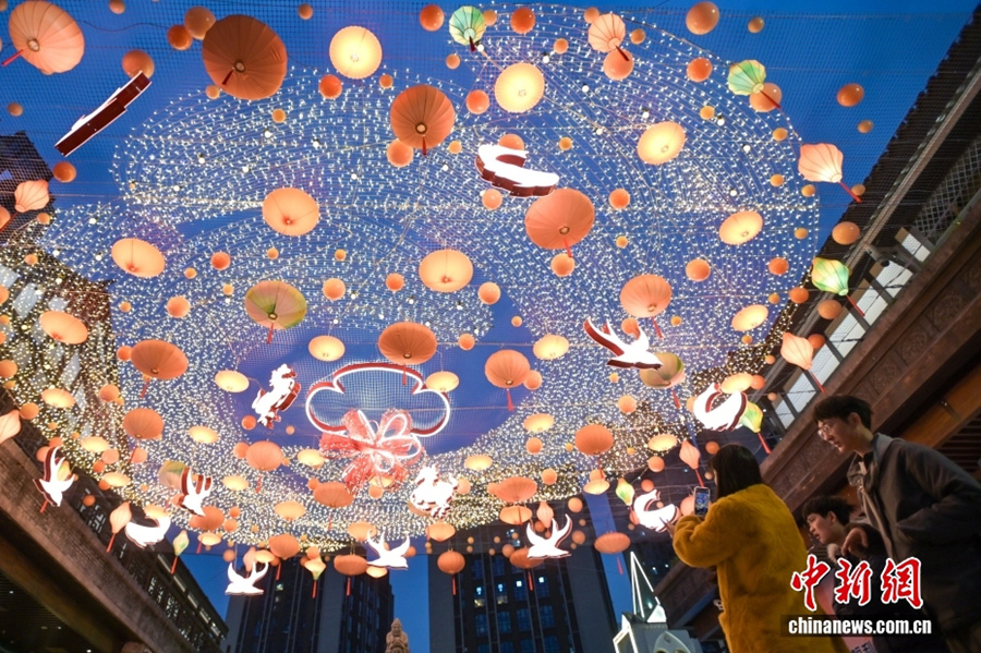 资料图:游客在重庆弹子石老街观赏新年灯会。中新社记者 何蓬磊 摄