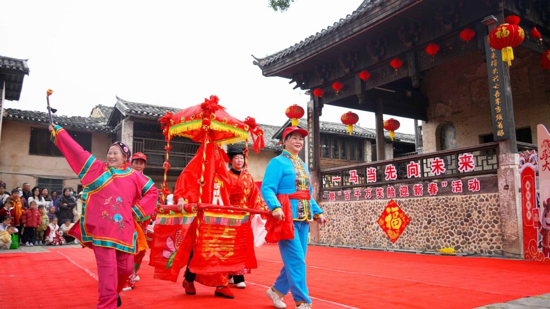 上午时分,阳光倾洒在周前古村的鹅卵石巷道上。这里是第五批中国传统村落,乾隆年间的古墟遗韵犹存,清凉寺塔影斑驳,见证了无数个春秋更迭。然而今年的年味,不仅仅发酵于陈年老酒,更流动在一条特殊的巡游路线上。