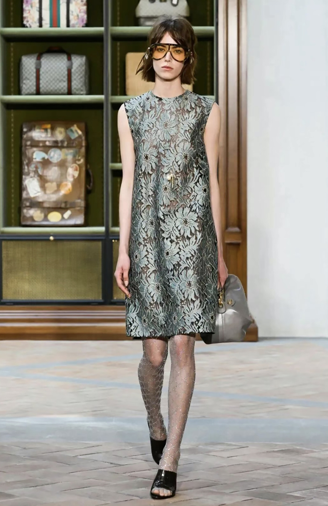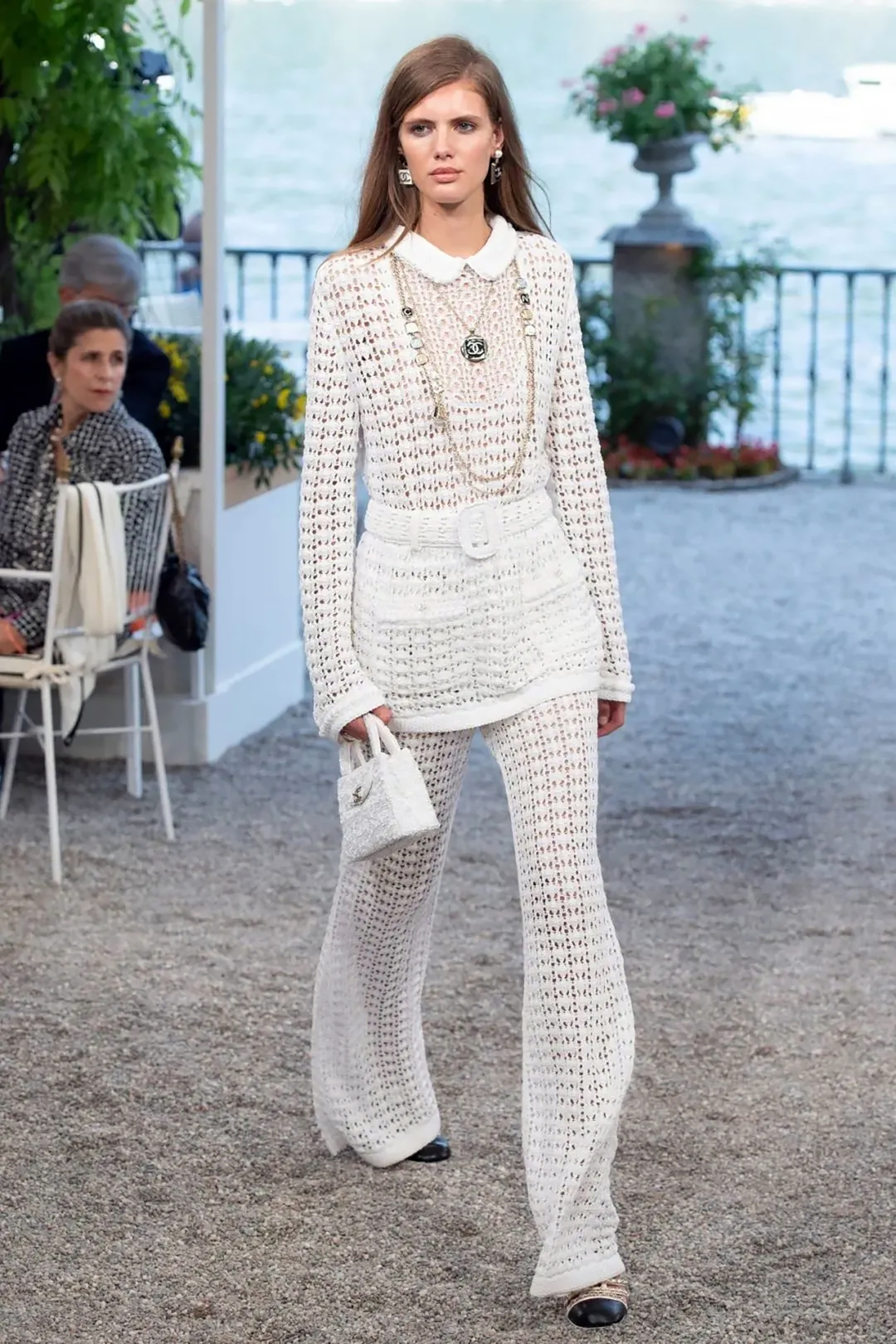 香奈儿以一场时空漫游式的时装表达,诠释洒脱与诗意:短款荷叶边塔夫绸礼服轻盈明媚,粉彩色调呼应湖畔光影;斜纹软呢套装与庄园暖调建筑相映成趣,自带度假氛围感。GUCCI则以文艺沙龙般的氛围,续写意式浪漫。本季将佛罗伦萨百年纺织传统与现代设计融合,锦缎、提花、蕾丝与水钻刺绣层层交织,复古与当代兼具。经典GG标识焕新演绎,夸张肩廓塑造昼夜皆宜的摩登感,全新Giglio袋以佛罗伦萨百合为灵感,为多场景切换提供了实用又高级的穿搭思路。
