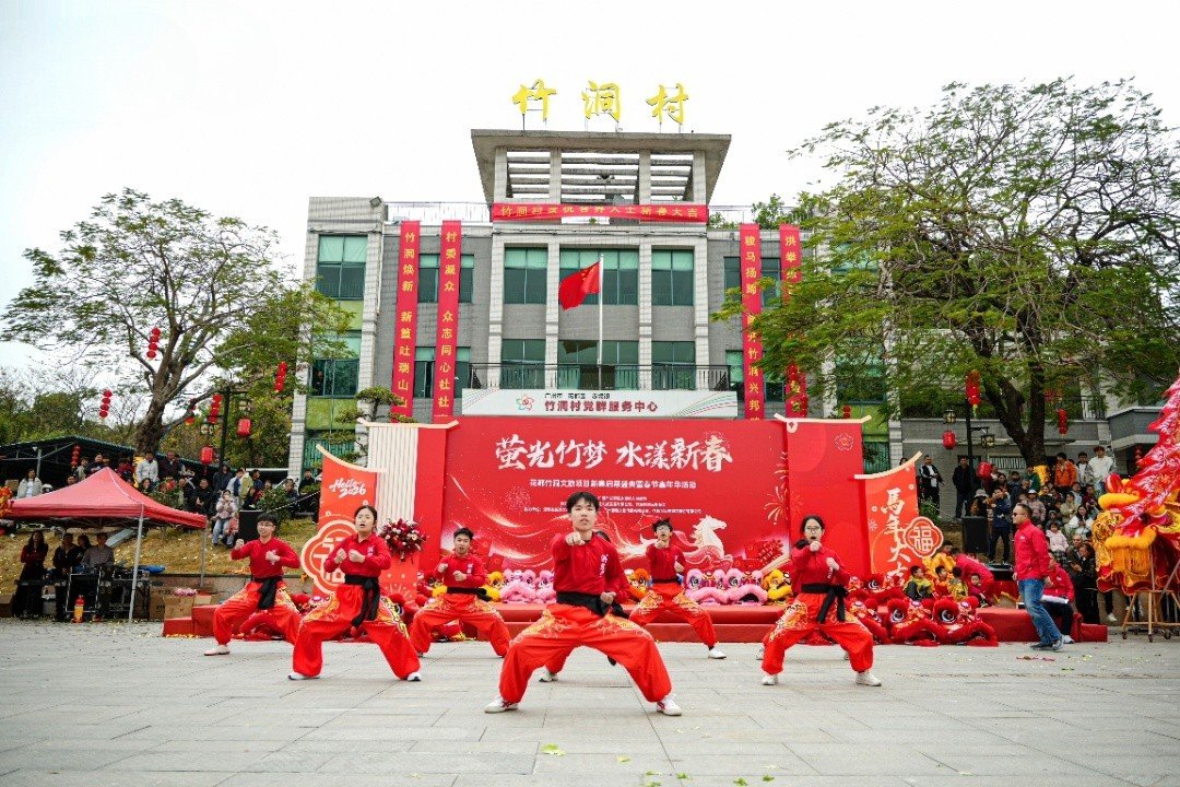 锣鼓喧天,醒狮腾跃。春节期间,“萤光竹梦·水漾新春”花都竹洞文体旅项目新春嘉年华在赤坭镇竹洞村拉开帷幕,标志着这座335年古村开启文体旅融合发展新篇章。活动由赤坭镇人民政府指导,广州智美竹洞文旅发展有限公司与竹洞村民委员会联合主办,中国体育彩票支持。