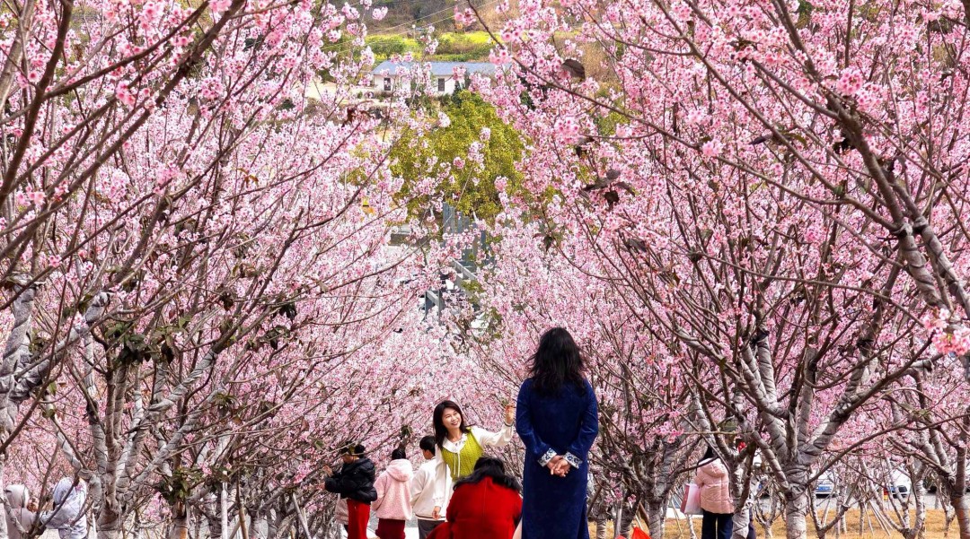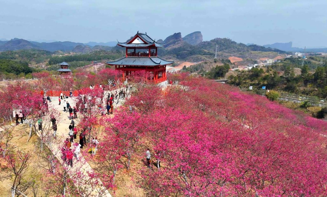 农历大年初二,韶关市仁化县大桥镇的五马寨樱花生态公园内,数千株樱花迎春绽放,山间花海如云似霞,山下菌菇火锅鲜香四溢,一场融合视觉盛宴与味觉享受的春日之旅,吸引着游客纷至沓来,成为丹霞山片区农文旅融合的一个生动场景。