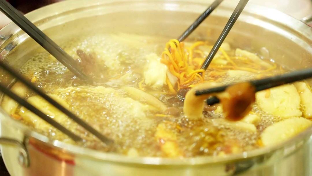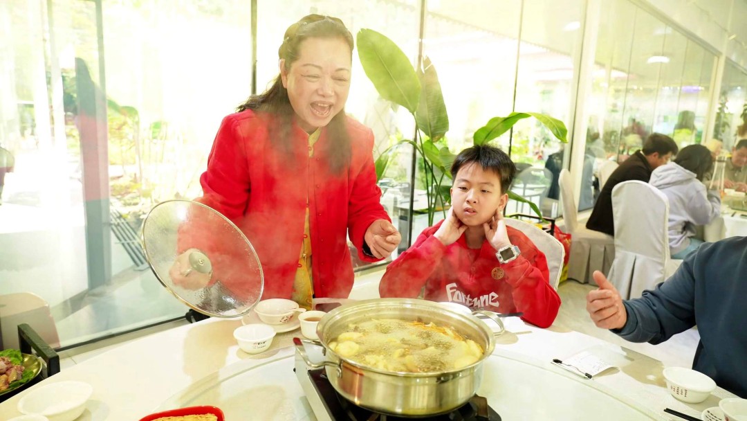 如果说山上的樱花林是一场视觉的盛宴,那么山下的五马寨生态园则带给游客们舌尖上的山野之味。记者在现场看到,新鲜采摘的各类菌菇与当地放养的走地鸡一同入锅,只需片刻炖煮,香气便弥漫整个空间。除招牌的鲜菇火锅外,生态园还利用多种菌菇研发了特色菜肴,配上一杯清润的灵芝茶,让游客在品味美食中感受大自然的馈赠。