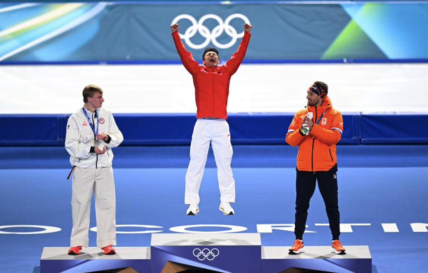 “北京冬奥会后,速滑的竞争更激烈了,就像前面一直有座山,我感觉始终跨不过去,赛前我给自己暗示,必须相信自己能做到,现在我跨过去了,尤其在这么重大的舞台上。”宁忠岩感慨道,他终于跨过了那座山。在颁奖仪式上,宁忠岩喜极而泣,“我还是不敢相信,这一切太突然了。但我感觉这是我最完美的一场比赛。我今天晚上肯定睡不着了,太难以置信了。从北京冬奥会到米兰冬奥会,这一路走来,所有的汗水、泪水,在这一刻全都值得。”