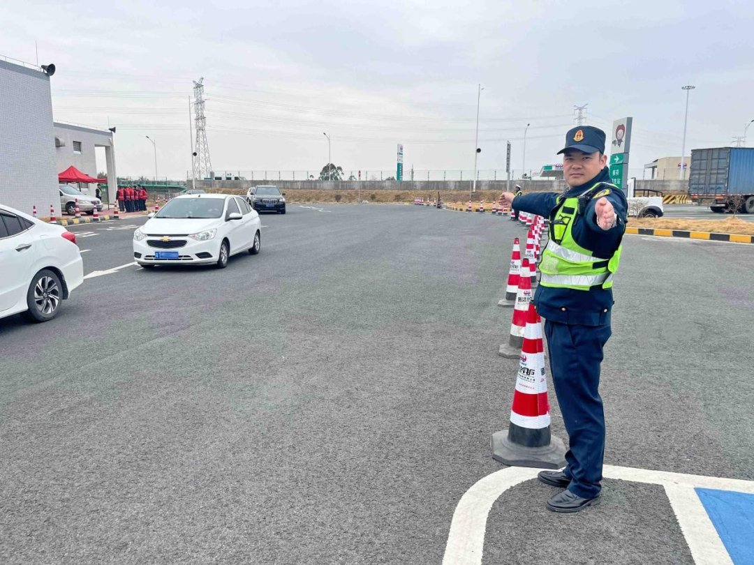 “前面有车位,不要急,慢慢来……”大年初三上午十一时,横荷服务区迎来假期走亲访友、短途旅行的集中出行车流客流高峰,服务区里车水马龙、人头攒动。一大早,陈健勇按照工作安排,和同事们提前到达了服务区,在完成服务区的日常监管工作后,便开始了一天的值守工作。等到车流客流高峰来临,陈健勇更加忙了起来,穿梭在停车场区疏导车流,引导客流有序进出服务楼,提供便民服务,指挥保洁人员及时做好卫生清洁等等,一直坚守到傍晚时分,车流渐少时他才和同事们返回中队驻地,连午餐也是食堂送到服务区就地解决。