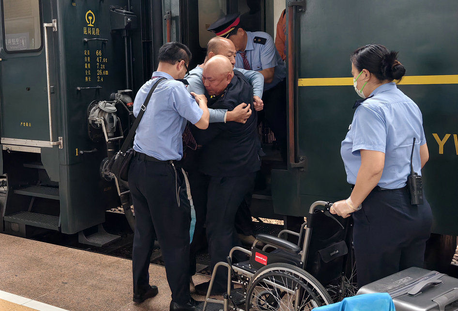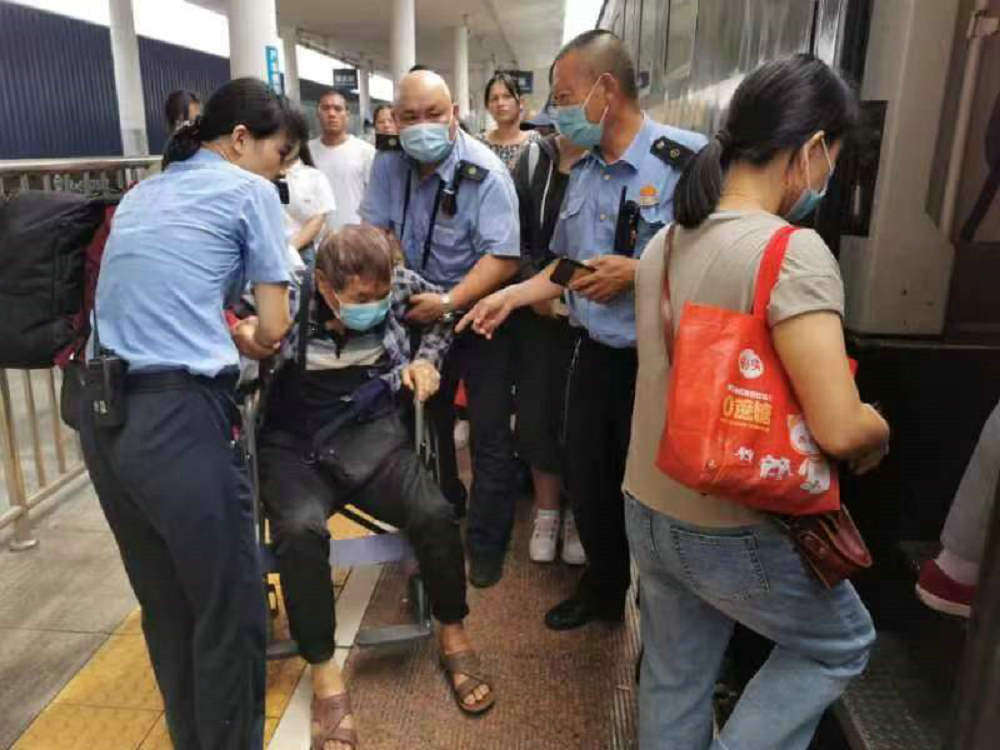 有一次,一名刚下车的旅客突然脸色惨白,捂着腹部蹲在地上。赖耀棠快步上前,得知是胆结石急性发作,立刻推来轮椅,上报值班员,拨打120,守在身边安抚,直到救护车驶离,才松了一口气。