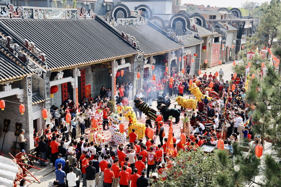 伴着震天锣鼓,巡游队伍从区氏宗祠出发,沿月池缓缓前行,途经社学、翰林门、关帝庙,专程拜谒孔圣庙,再穿行村中八坊,最终返回区氏宗祠,全程近两小时。沿途舞狮腾跃、彩旗飘扬,震天的锣鼓声、欢快的笑声与村中祠堂、青云路等历史建筑交相辉映,勾勒出一幅流动的岭南民俗长卷。逾万名游客沿途追景拍摄,手机、相机快门声与欢呼声交织回响,相关内容迅速在朋友圈、短视频平台刷屏,成为新春期间备受关注的文旅热点。