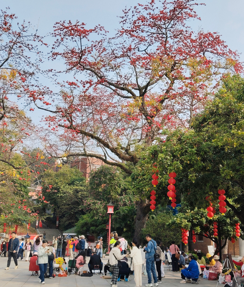 今年,中山纪念堂的木棉花期与春节长假罕见重合,为市民游客提供了在走亲访友之余,领略“红棉映华堂”这一羊城经典春景的绝佳机会。