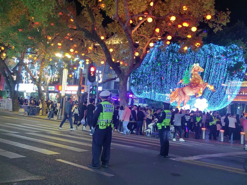 “定人、定时、定岗、定责、保畅通”,交管部门以“四定一保”为抓手,全面启动新春灯会交通安保工作,在环城西路、小西直街、塘尾街等核心区域,46个重点管控点位精准布设,200名安保力量定岗值守。