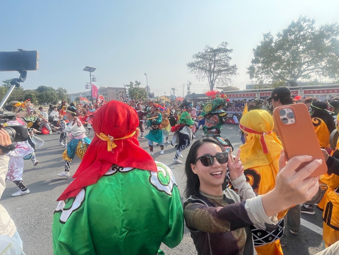 “头一回边吃饭边看英歌舞,真的太震撼了!”从湖北自驾到潮汕旅游过年的刘先生、张女士夫妇难掩兴奋:“一边看英歌舞,一边还尝着地道潮汕菜,这种感觉,既新鲜又亲切。”他们对活动的组织和体验赞不绝口:“原本担心人多会乱,没想到现场安排得井井有条。菜好吃,表演精彩,吃完还能逛逛市集买点特产,大人小孩都玩得尽兴。这一趟真值,实实在在感受到了潮汕人过年的那份热闹和诚意。”