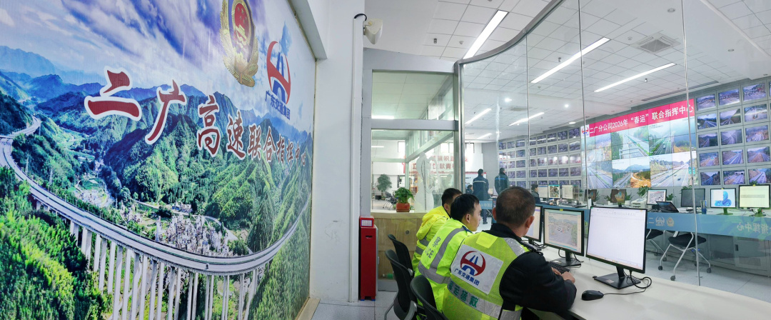 春运前,二广高速联合清远市交通管理支队高速六大队,在监控中心设立高速协同共建联勤指挥中心(以下简称“联合指挥中心”),由监控、高速交警24小时联合值守,强化“一路多方”联勤联动。