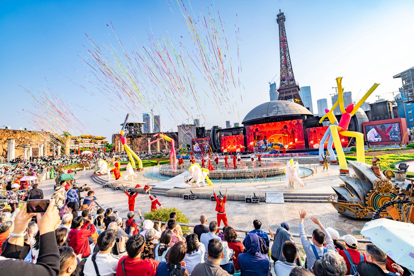 “赛博浪漫”引爆夜空,沉浸式互动受热捧。春节期间连续上演的千架无人机新春大秀,每晚都将现场气氛推向高潮。以夜空为幕布编排的新春图案,被游客们拍摄上传至小红书、抖音,让“世界之窗无人机”成为春节期间深圳的又一名场面。景区还推出了金曲嘉年华与炫酷电音派对,高颜值唱跳团体、实力DJMC组合及外籍乐队联袂燃炸现场,再现新春万人合唱、万人蹦迪的音乐自由现场。