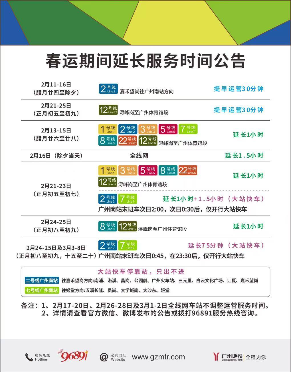 2月22日至27日地铁停运期间,广州白云站公交总站2楼与南出发平台增设免费公交疏运专线,开行至新市百信广场。请“红眼高铁”到站旅客根据现场标识与工作人员指引,优先选择公交快速离站。