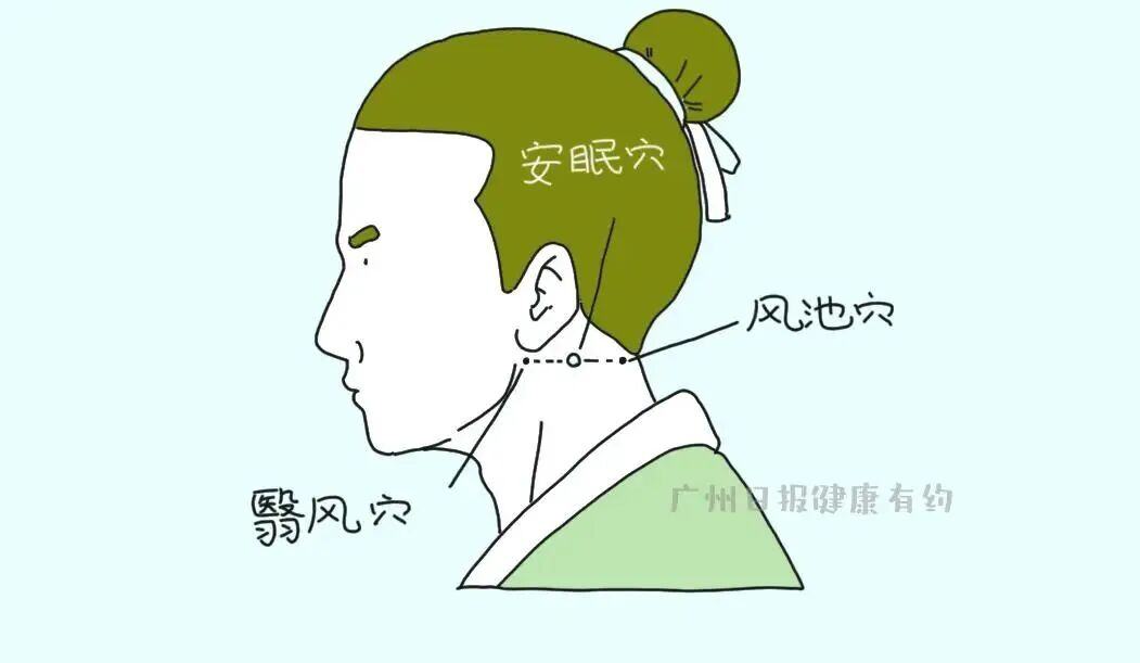 安眠穴在翳风与风池穴连线中点,是助眠安神的重要穴位。