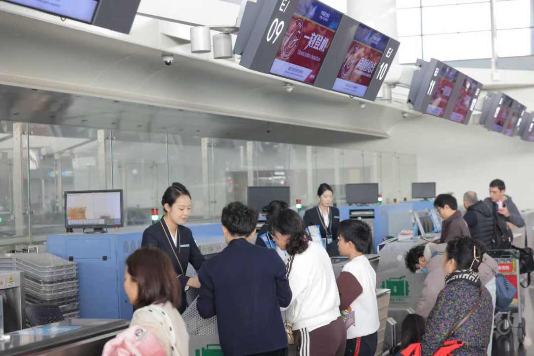 南航在广州白云国际机场二号航站楼值机区、行李提取区开展新春主题活动,设置移动服务台,在亲和精细服务中融入春节互动体验,通过邀请旅客写“福”字、写春联、年味打卡、福运抽签等,营造新春佳节浓厚氛围。