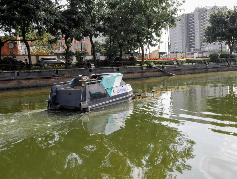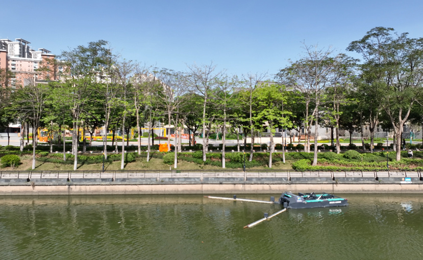 “荔湾河涌水系纵横交错,桥洞多、浅滩密、死角多,大型保洁设备难以进入作业,精细化保洁难度不小。”侨银荔湾河涌项目负责人胡炽威介绍到,为破解这一难题,近年来因地制宜在荔湾河涌试点投放无人保洁船,构建起“人机协同”的新型作业模式。