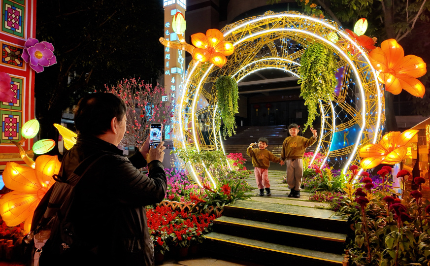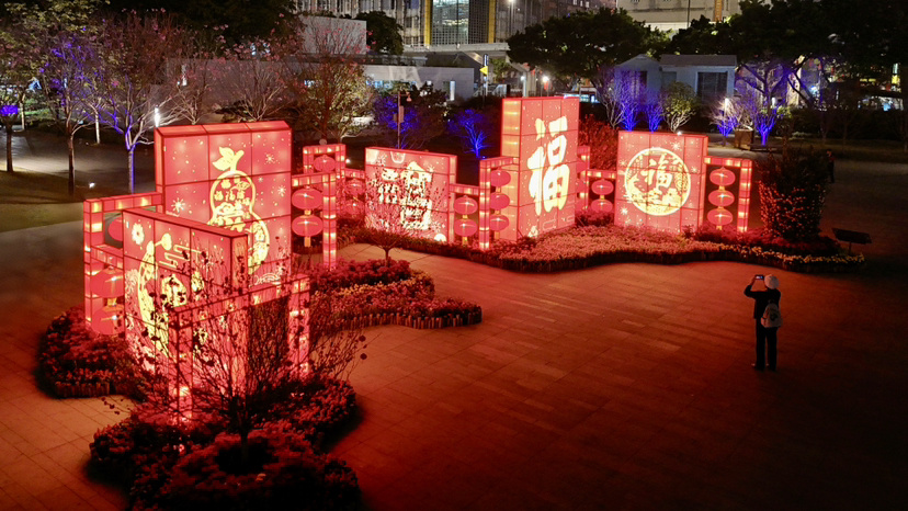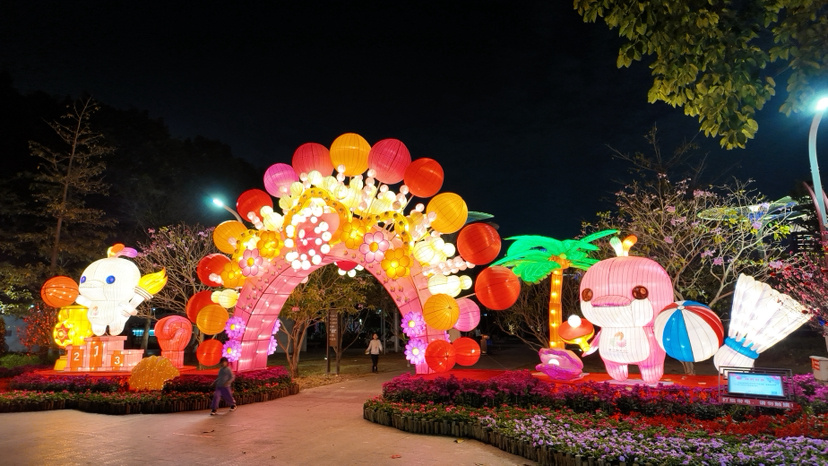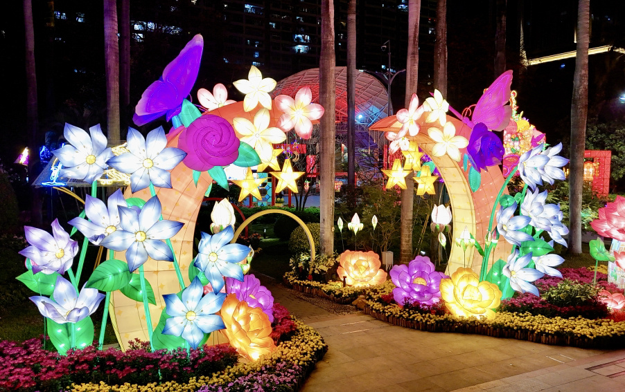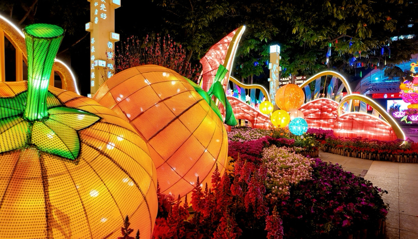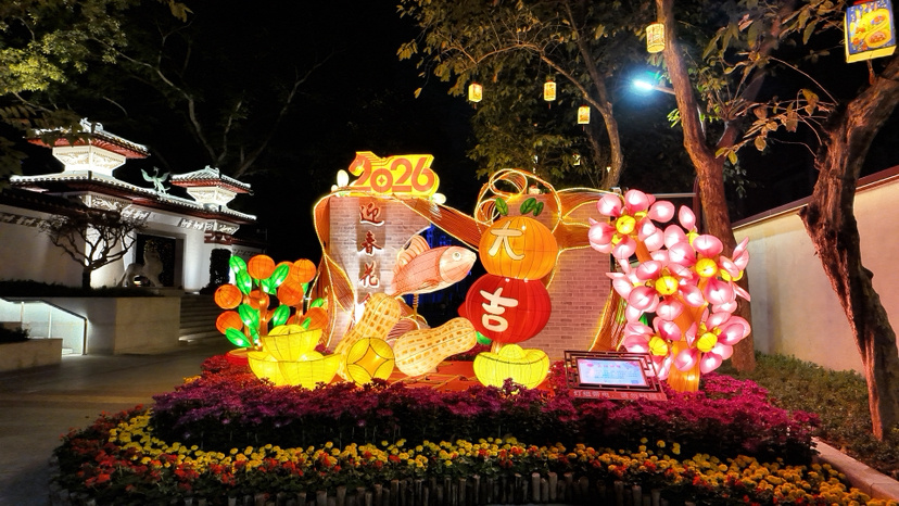 火树银花映春色。今年灯会秉持绿色低碳理念,整体采用节能环保材料,巧妙结合园区水景与林木布设,营造出“火树银花不夜天,流光溢彩映春色”的诗意画卷。其中,中心广场上的《福果盈瑞》灯组以丰盈果实、温煦宫灯与雅致满洲窗相映,融汇新春纳福的喜庆意趣;《春满繁花》灯组是以大湾区城市风貌为灵感打造的“新中式”风格灯组,与灿烂繁花相映成画,描绘出春满湾区、繁华共荣的锦绣画卷;《粤韵悠扬》传递悠悠粤韵,共贺吉祥新岁。灯会上众多的灯组既展现传统文化,亦展现岭南特色,传递新春祝福,带给广大市民“一灯一意境,一步一画卷”的沉浸式体验。