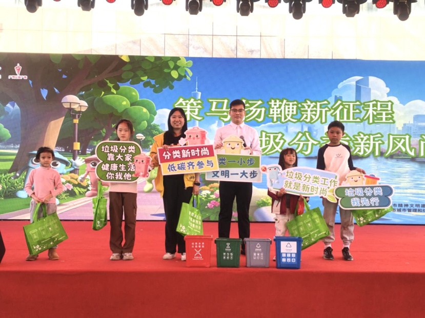 在迎春花市争当“环保小达人”,让文明新风与年味同行!南沙区大岗镇迎春花市开启以“策马扬鞭新征程,垃圾分类新风尚”为主题的新春活动。活动现场,垃圾分类志愿者、党员和分类督导员热情地向来往逛花市的居民、市民群众、商户派发《广州市南沙区生活垃圾分类指南》宣传资料,细致讲解垃圾分类知识,引导大家践行分类新时尚。现场还播放垃圾分类主题宣传片,用生动画面、清晰讲解普及分类知识。通过视听结合的方式,将枯燥的知识点转化为易懂易记的内容,帮助不同年龄段的群众快速掌握分类要点,营造“人人学分类、人人懂分类”的良好氛围。此外,活动现场还设置了分类游戏区、手工体验区,邀请小朋友化身“环保小达人”,利用外卖包装袋等材料,动手制作创意环保徽章和分类小风车,在动手实践中感受变废为宝的乐趣,让绿色环保的种子在心中生根发芽。