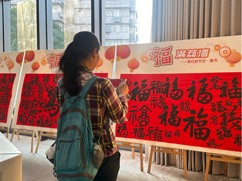 新春期间,凝聚老少匠心、满载祝福的“荔湾百福图”亮相荔湾区新时代文明实践中心。长卷红底黑字、气势恢宏,百余个形态不一、神韵各异的“福”字依次排开,既有书法大家的沉稳大气,也有少年学子的灵动朝气,一步一景、满目皆福,瞬间将新春氛围拉满。