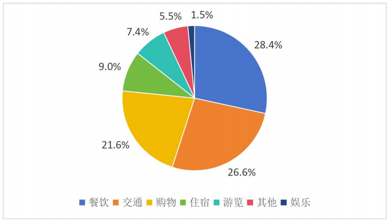 春节假期,抽样调查结果显示,餐饮、交通、购物依旧是春节游客花费的主要内容,分别占游客花费28.4%、26.6%和21.6%。