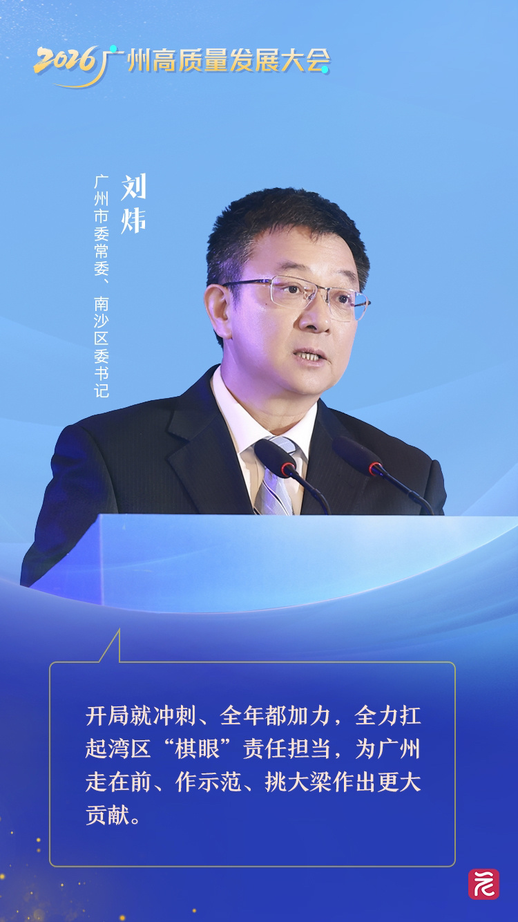 2026年广州市高质量发展大会今天举行,广州市委常委、南沙区委书记刘炜发言时表示,过去一年,南沙铸牢使命交答卷,《南沙方案》第一阶段目标顺利完成,地区生产总值增长4.8%,先进制造业增加值占规上工业比重达70.4%。春节假期,南沙“人货两旺”,大湾区灯会吸引近20万人次游客赏灯打卡,南沙港区跨境包裹每日超万件,活力满满、热气腾腾。新的一年,南沙将坚决落实中央和省、市部署要求,开局就冲刺、全年都加力,全力扛起湾区“棋眼”责任担当,努力实现地区生产总值、社消零总额、固定资产投资、规上工业产值均增长6%,为广州走在前、作示范、挑大梁作出更大贡献。