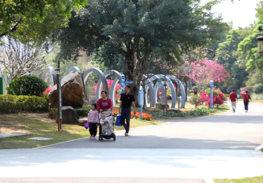花丛间、绿道旁,处处可见拍照留念的身影。孩子们追逐嬉戏,老人们闲坐聊天,公园良好的生态环境还吸引了众多鸟类栖息,为这趟踏青之旅增添了几分野趣。对于不想远行的市民来说,这里就是“家门口”的年味——不必远游,也能遇见春意。