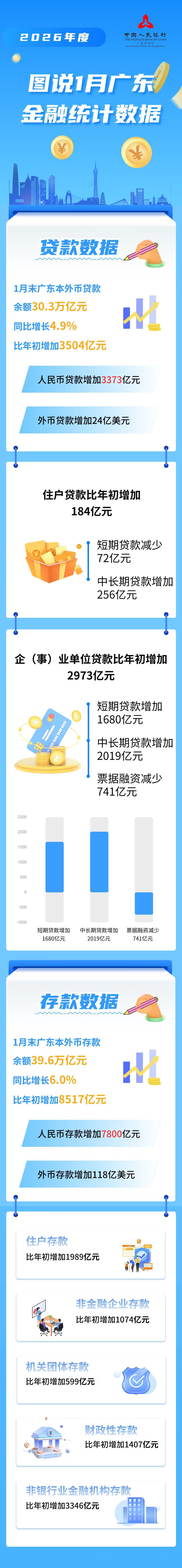 广东成为全国首个本外币贷款余额突破30万亿元关口的省份。2月26日,中国人民银行广东省分行发布了1月广东金融统计数据,广东省金融运行实现良好开局,1月末,广东本外币贷款余额30.3万亿元,同比增长4.9%,比年初增加3504亿元,彰显金融支持实体经济的力度持续增强。