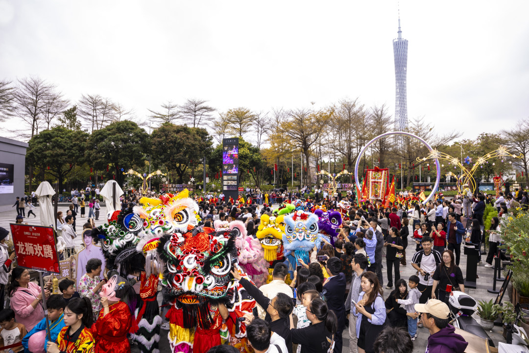 猎德社区地处天河CBD核心,既有摩天楼宇汇聚,也蕴含深厚的岭南古村文化。本次巡游路线贯穿现代商圈与古村街巷之间,传统烟火气与国际时尚感完美融合。市民游客沿途驻足观赏,摸龙狮、接喜果,沉浸式感受广府传统年味和“高楼之下赏民俗、CBD里过大年”的独特体验,吸引大量年轻人与外地游客打卡体验。