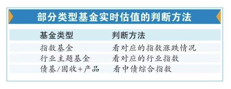 记者采访了解到,其实是有办法可以预计基金的当日估值情况。如果是指数基金,投资者可以直接看对应的指数涨跌情况,如沪深300ETF可以看对应的沪深300指数;如果是行业主题基金,投资者可以关注对应的行业指数,如医疗健康基金,可以看中证医疗指数。