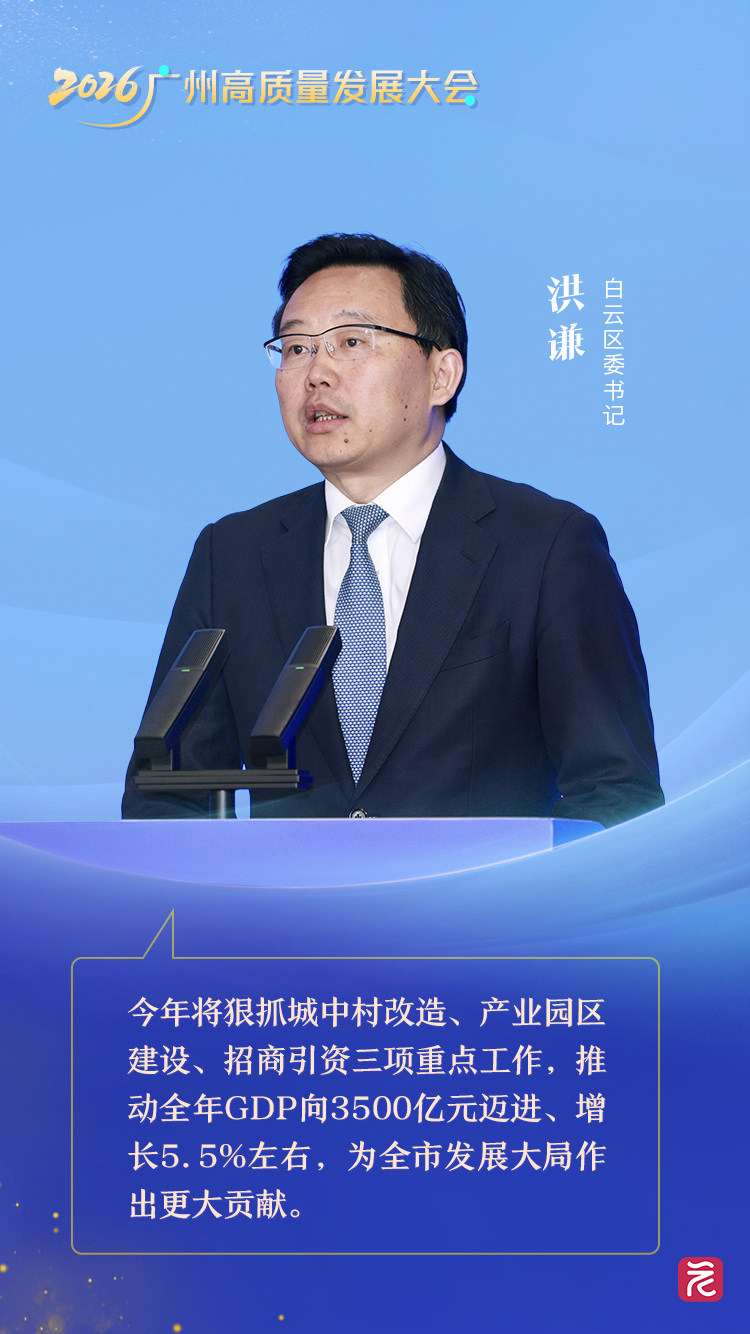 白云区委书记洪谦表示,白云区将狠抓城中村改造、产业园区建设、招商引资三项重点工作,紧盯“目标、指标、对标”,推动全年GDP向3500亿元迈进、增长5.5%左右,完成固投1400亿元、增长5%以上,规上工业、社零增长5%,外贸进出口总值增长10%以上。