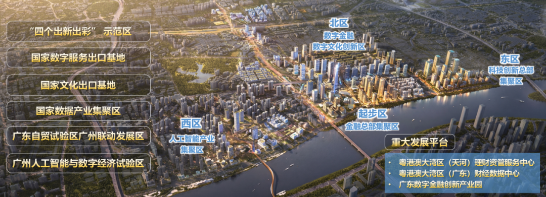 广州国际金融城位于珠江高质量发展带与广州活力创新轴的交汇点,坐拥7公里长的珠江岸线,总面积8平方公里。其拥有国家数字服务出口基地、国家文化出口基地、广东数字金融创新产业园等金字招牌,政策叠加效应显著,正加速成为粤港澳大湾区高质量发展的标杆区域。