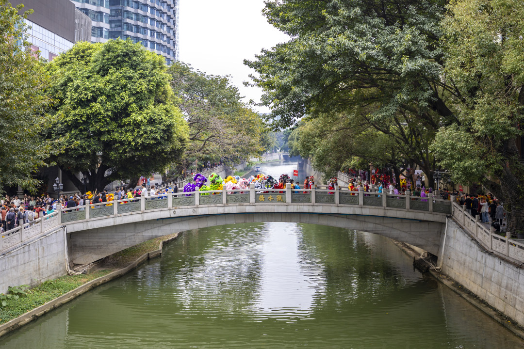 大年初十,猎德新春大巡游,巡游队伍经过猎水桥。